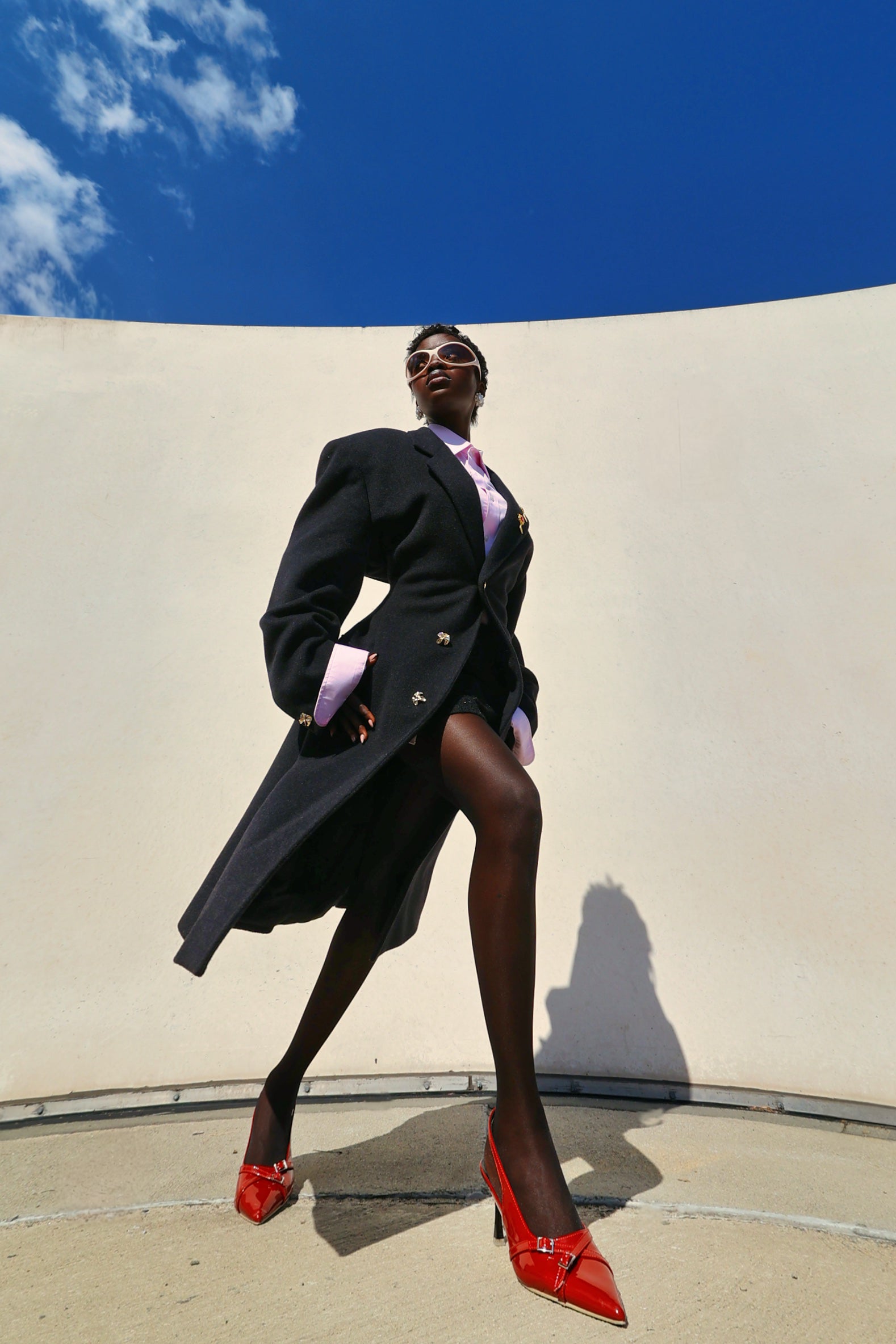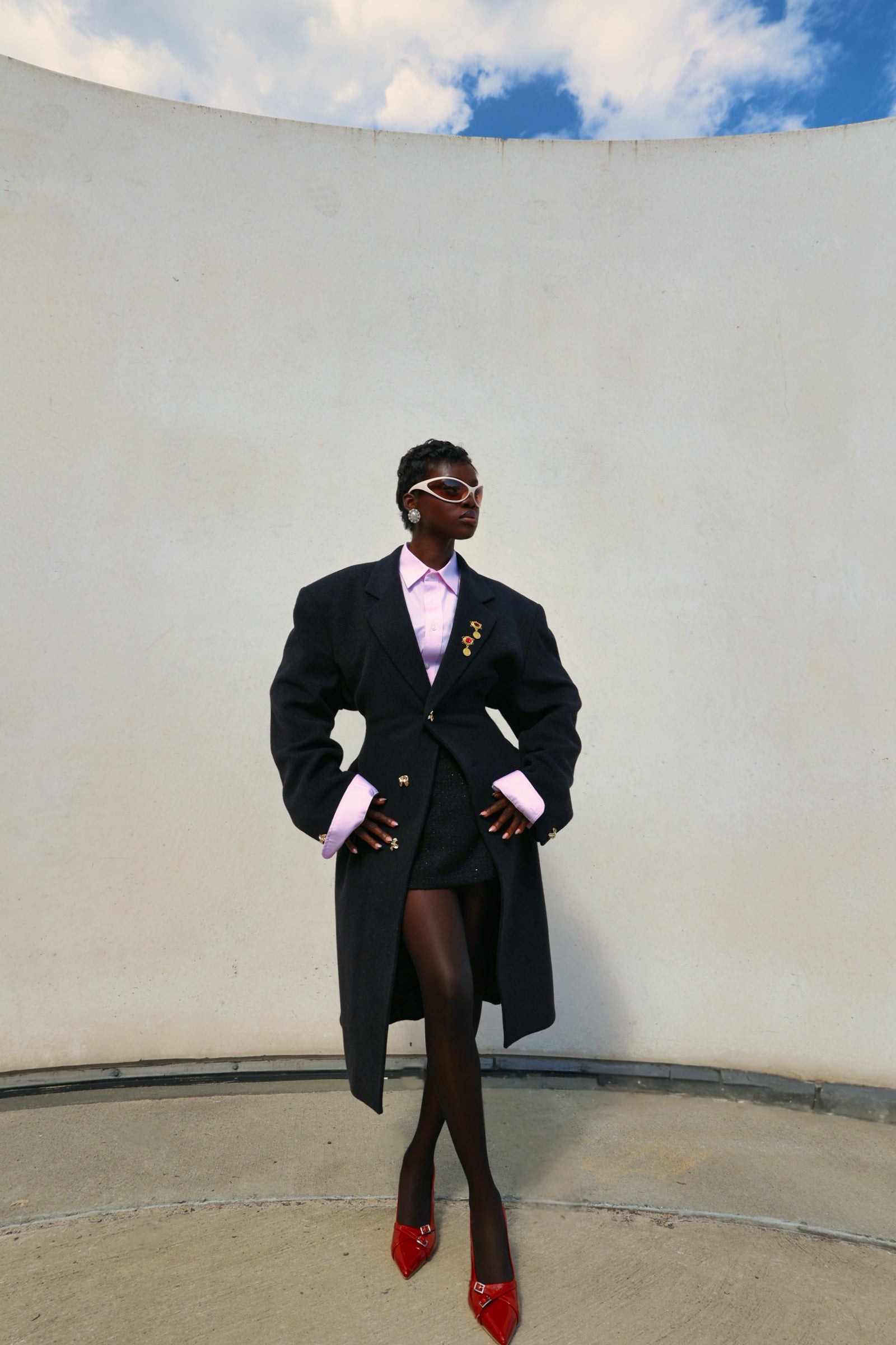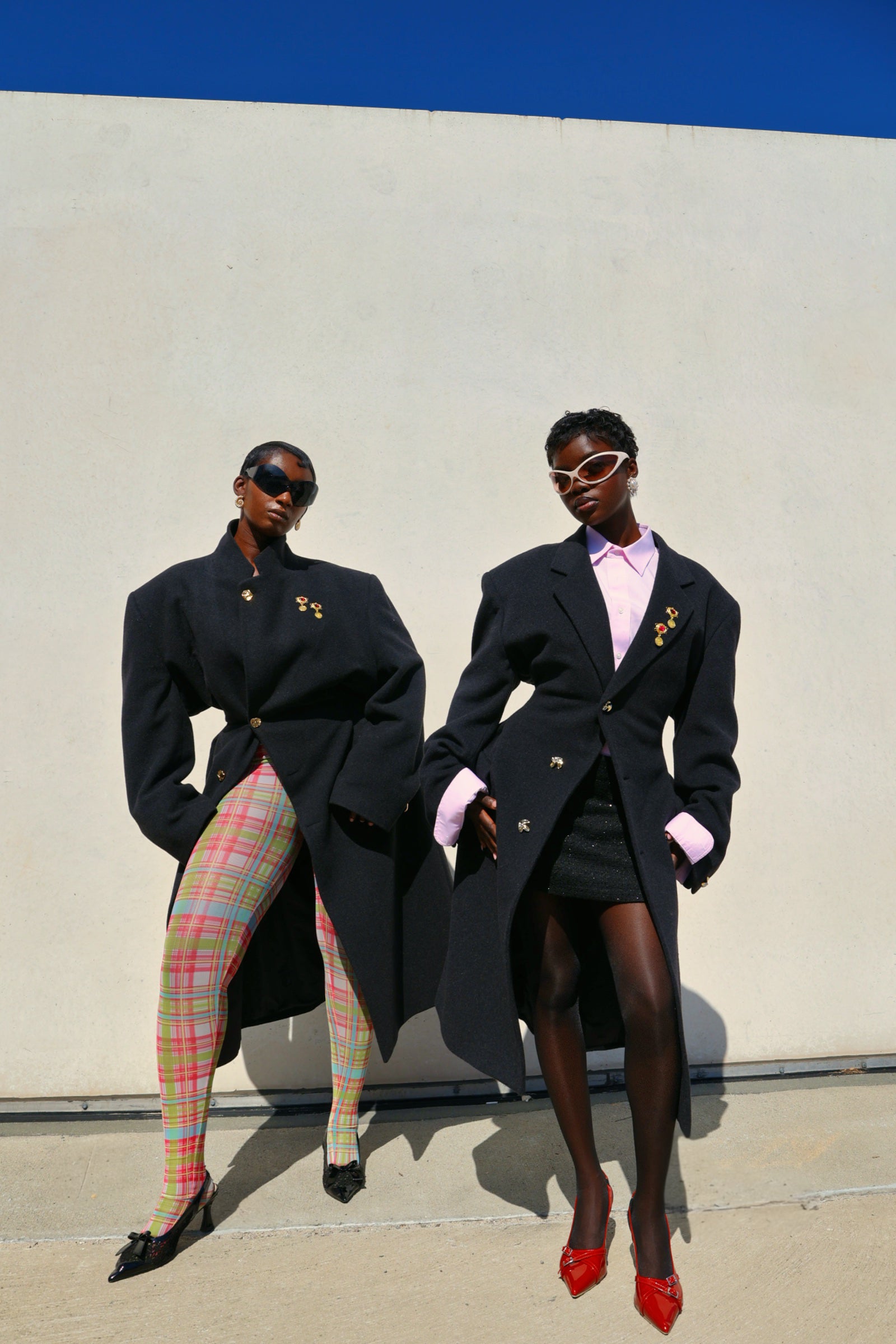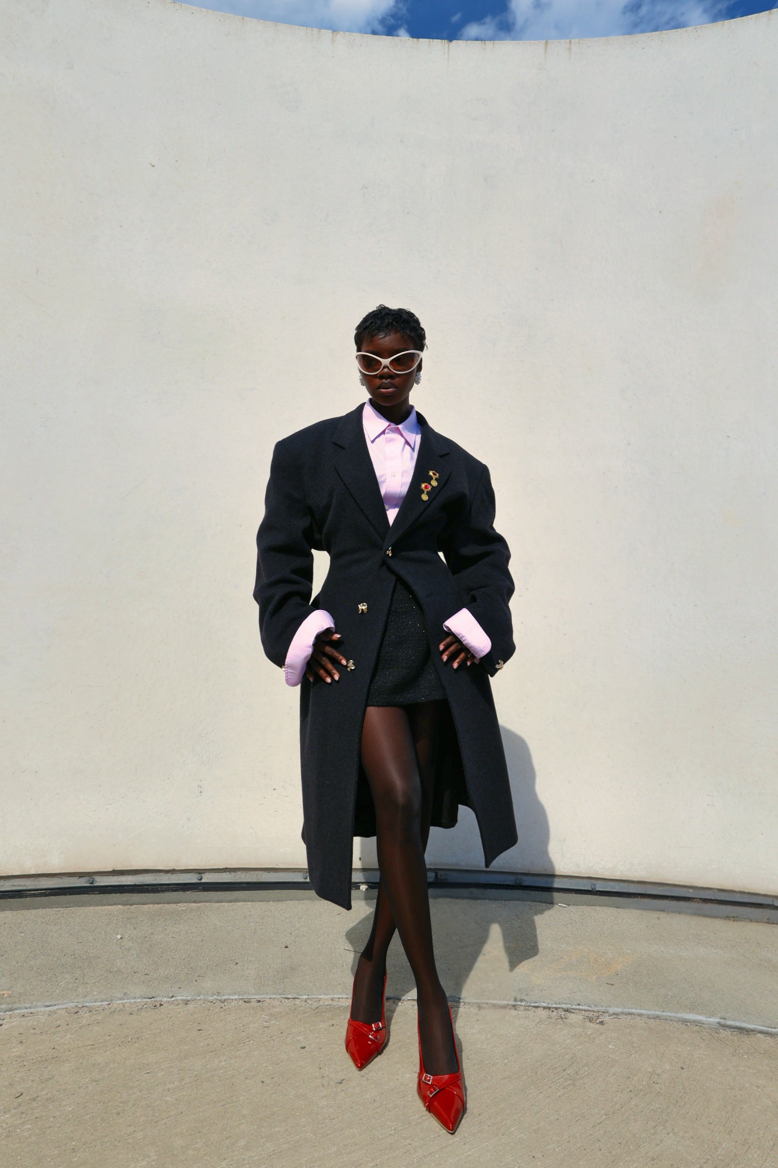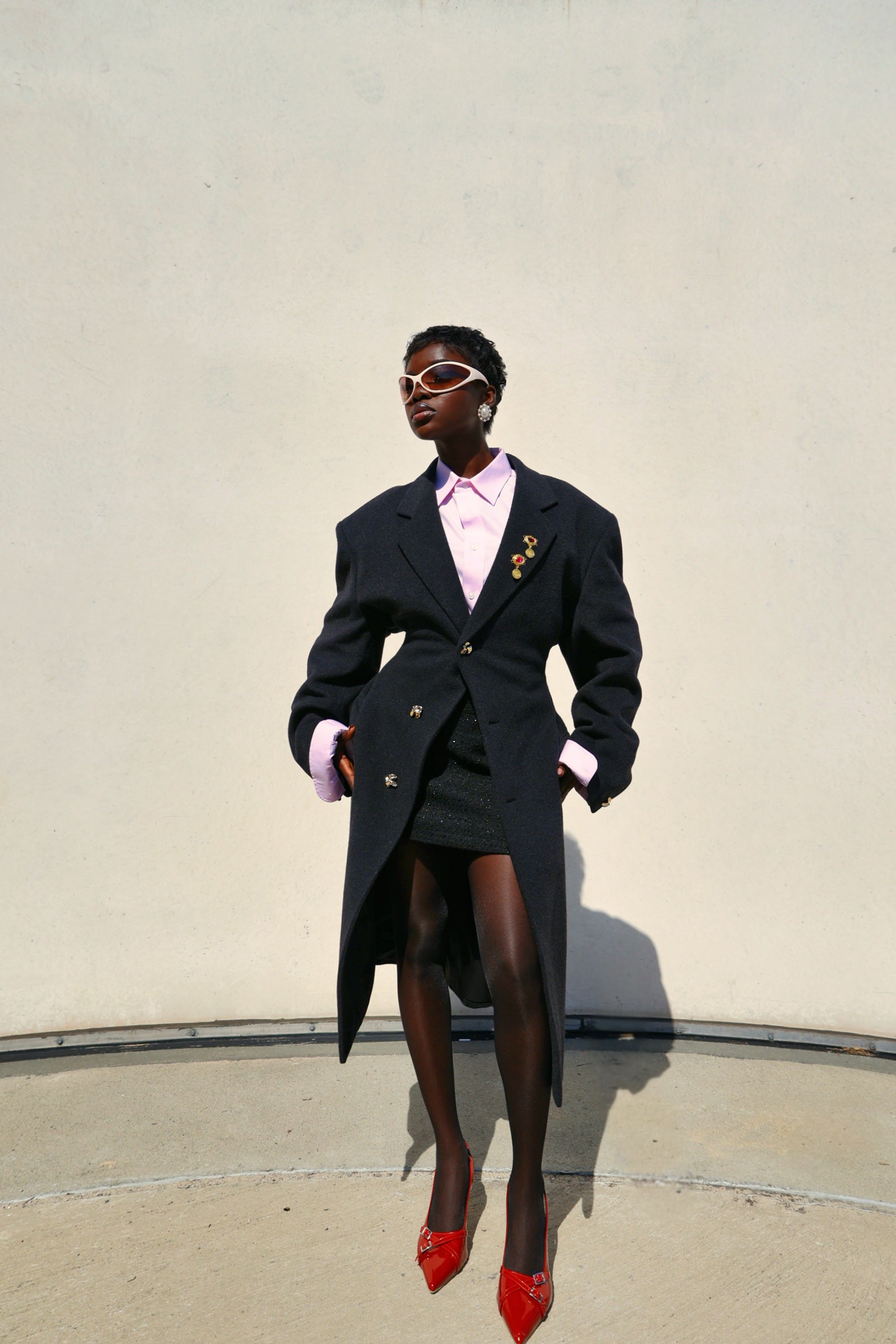 A bold clash of structure and softness, the Cleo Set is where power dressing gets romantic. This reworked one-of-a-kind vintage blazer coat comes cinched at the waist with dramatic shoulders and sculpted tailoring—paired with a sleek black mini skirt that adds balance and just enough leg. Luxe gold-tone buttons elevate the piece into something collectible. NOT SOLD WITH PINK BUTTON UP.