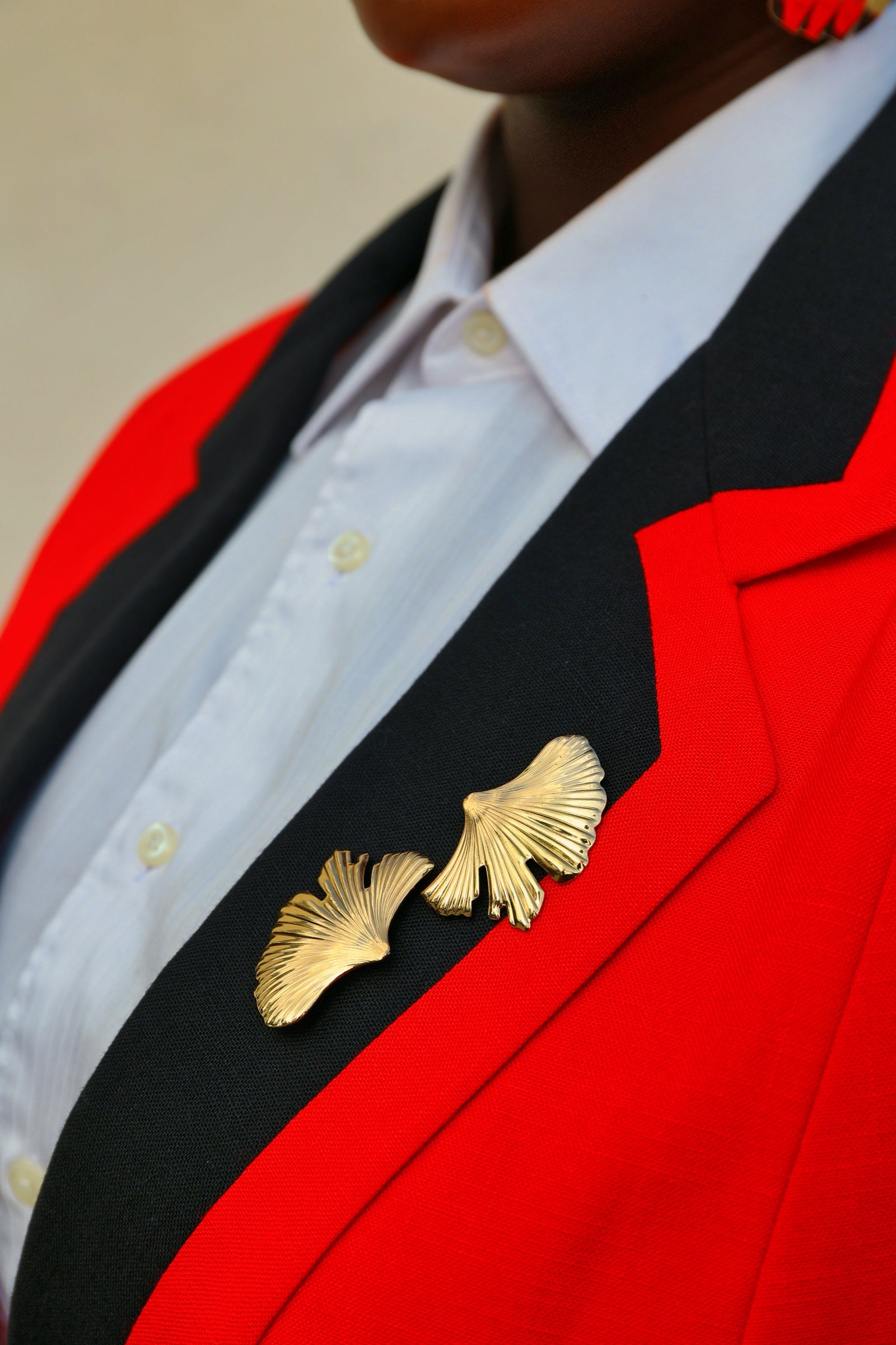 The MELINA skirt suit set, is a bold, one-of-one reworked vintage suit featuring a structured blazer with gold-tone buttons and contrast black lapels, paired with a matching tailored mini skirt. Designed to command attention, this look merges classic tailoring with a sharp, modern cut. Sold exactly as styled—blazer and skirt only.